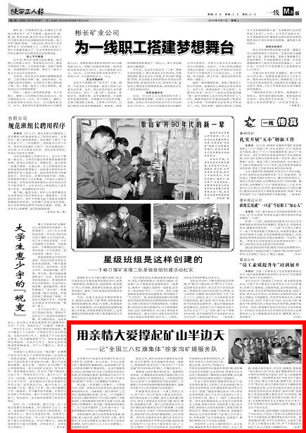 在有著58年創(chuàng)業(yè)歷史的銅川礦業(yè)公司百里礦區(qū),活躍著一支19年如一日全心全意為礦工服務(wù)的礦嫂服務(wù)隊(duì),這就是銅川礦業(yè)公司徐家溝煤礦礦嫂服務(wù)隊(duì)。這支礦嫂服務(wù)隊(duì)目前已成為銅川礦區(qū)女工協(xié)管安全的亮點(diǎn)品牌,并在陜煤化集團(tuán)、陜西煤炭行業(yè)中產(chǎn)生了較高的知名度和影響力,2014年2月被全國婦聯(lián)授予“全國三八紅旗集體”光榮稱號。
