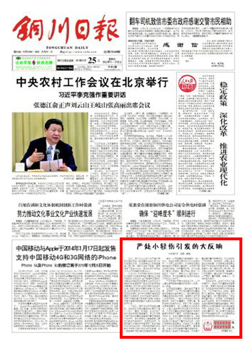 銅川日?qǐng)?bào) 2013年12月25日 頭版