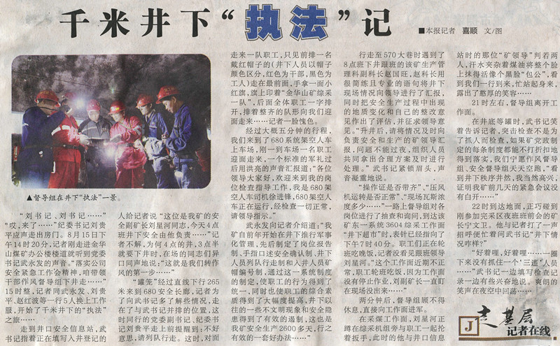 ●9月9日“陜西日報(bào)”第五版刊發(fā)《千米井下“執(zhí)法記”》