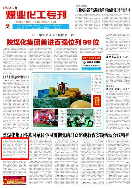 陜西工人報 2013年9月3日 煤業(yè)一版
