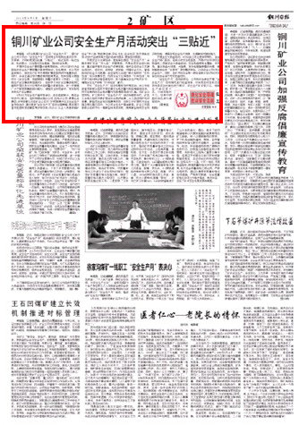 6月份是銅川礦業(yè)公司“安全生產(chǎn)月”,銅川礦業(yè)公司今年的“安全生產(chǎn)月”活動同往年相同的是動手早、安排細(xì),不同的是更加注重“三貼近”:貼近實(shí)際、貼近生活、貼近群眾,以此強(qiáng)化安全基礎(chǔ),推動安全發(fā)展。