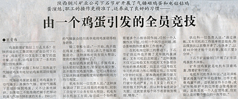 ● 4月8日“中國(guó)煤炭報(bào)”第二版刊發(fā)《由一個(gè)雞蛋引發(fā)的全員競(jìng)技》(作者:巨宏偉)