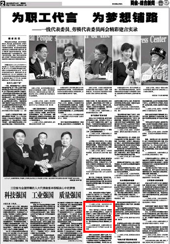 工人日報 2013年3月14日 第二版