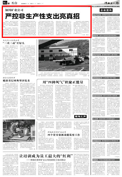 本報(bào)訊銅川礦業(yè)公司牢固樹立過“緊日子”管理思想,深層次、常態(tài)化推進(jìn)“增收節(jié)支”工作,保持企業(yè)健康持續(xù)發(fā)展。