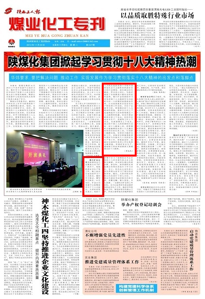 銅川礦業(yè)公司黨政領(lǐng)導(dǎo)這幾天都是白天下礦廠到井下、現(xiàn)場檢查安全生產(chǎn)等工作,晚上到辦公室加班學(xué)習(xí)十八大報告,摘抄學(xué)習(xí)筆記,撰寫學(xué)習(xí)體會。11月14日,礦業(yè)公司黨委中心組集體學(xué)習(xí)了十八大報告,大家紛紛發(fā)言表示:黨的十八大報告是新形勢下奪取中國特色社會主義新勝利的政治宣言和行動綱領(lǐng)。報告順應(yīng)時代潮流,符合黨心民心,為我們描繪了全面建成小康社會的宏偉藍(lán)圖。銅川礦業(yè)黨政把學(xué)習(xí)宣傳貫徹十八大精神作為當(dāng)前和今后一個時期的首要政治任務(wù),公司黨政聯(lián)系企業(yè)安全生產(chǎn)和經(jīng)營工作實際,討論了認(rèn)真學(xué)習(xí)好、貫徹落實好十八大精神的措施,要求全公司上下迅速掀起學(xué)習(xí)宣傳貫徹落實十八大精神的熱潮,切實在領(lǐng)會精神實質(zhì)上下功夫,在結(jié)合企業(yè)安全生產(chǎn)、黨建等工作上下功夫,在貫徹落實上下功夫,真正把干部工人的思想和行動統(tǒng)一到十八精神上來,把智慧和力量凝聚到實現(xiàn)十八大確定的各項目標(biāo)任務(wù)上來,引導(dǎo)職工腳踏實地,盡責(zé)盡力做好本職工作,采取切實措施善始善終搞好今年最后幾十天的安全生產(chǎn)等工作,積極謀劃好、準(zhǔn)備好完成明年各項工作任務(wù)的過硬措施,用搞好安全生產(chǎn)、富裕職工的優(yōu)異成績深入貫徹落實好十八精神。
