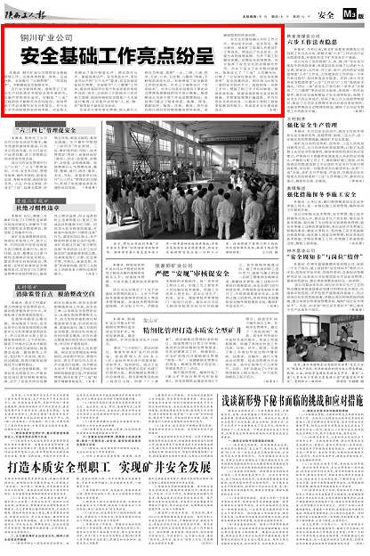 銅川礦業(yè)公司狠抓安全基礎(chǔ)管理工作,完善各類制度、資料、記錄臺(tái)賬,全面推行“五精管理”、“四項(xiàng)技術(shù)”,不斷提高安全保障水平。