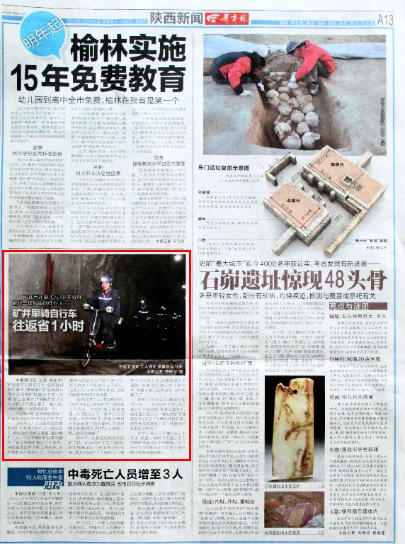 如何方便工人,李文輝介紹:“經(jīng)多方論證,決定在井下使用自行車代步。為此擴寬了巷道寬度,專門硬化出了一條井下自行車道。今年中秋節(jié),首批50輛自行車運到井下投入使用,不僅縮短了往返時間,同時大大減輕了職工的勞動強度?!?/p>
