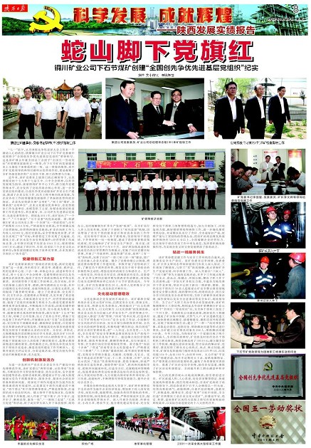 “七一”前夕,從全國創(chuàng)先爭優(yōu)表彰大會上傳來一個激動人心的消息,陜煤銅川礦業(yè)公司下石節(jié)礦黨委被中組部授予“全國創(chuàng)先爭優(yōu)先進(jìn)基層黨組織”榮譽(yù)稱號。這是該礦繼去年被全國總工會授予“全國五一勞動獎狀”后榮膺國家級的又一殊榮,在下石節(jié)礦的發(fā)展建設(shè)史上又描繪了濃墨重彩的一筆。這一榮譽(yù)的取得,離不開礦黨政領(lǐng)導(dǎo)的典型引路和示范帶動作用,更是凝聚了全礦各級黨組織和廣大黨員干部、職工的智慧與力量。