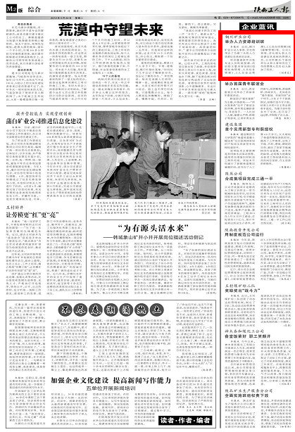 本報(bào)訊(劉孝文)近日,銅川礦業(yè)公司人事部、勞社部舉辦了為期三天的人力資源信息系統(tǒng)培訓(xùn)班。