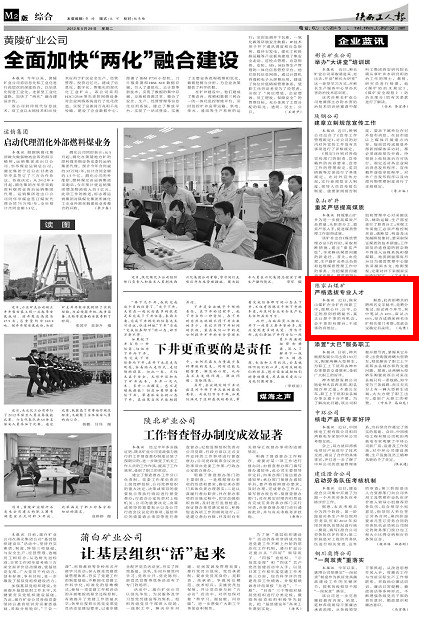 陜西工人報(bào) 2012年5月29日 煤業(yè)二版