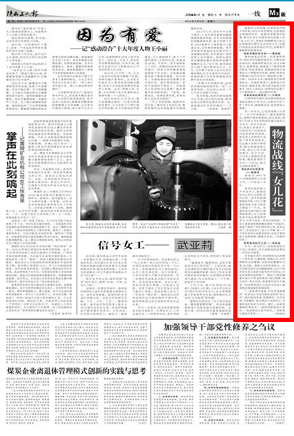 曹相益是總庫的一名普通保管員,技校畢業(yè)的她積極肯學(xué),不斷鉆研業(yè)務(wù)知識,狠練保管基本功,經(jīng)過不斷努力,積極探索,她練就了“物資保管活賬本”的業(yè)務(wù)絕活,能熟練地背出常用的幾十種配件的名稱、規(guī)格、現(xiàn)有庫存數(shù)量以及四號定位,做到賬卡物一口清。2009年元月,她被推選為保管組班長。在她的帶領(lǐng)下,保管員們苦學(xué)業(yè)務(wù),勤練本領(lǐng),努力成為業(yè)務(wù)上的能手、崗位上的標兵,保管組的女職工個個都練就了一身過硬的本領(lǐng)。