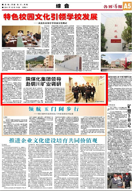 12月8日上午,魏鐵軍聽取了銅川礦業(yè)公司總經(jīng)理宋志剛關(guān)于銅川礦業(yè)公司及東坡礦、鴨口礦、徐家溝礦、金華山礦四個礦井有關(guān)情況的介紹。并與礦業(yè)公司及東區(qū)四礦與會領(lǐng)導(dǎo)就有關(guān)資源問題進(jìn)行了座談討論。當(dāng)天下午,魏鐵軍還趕赴王石凹礦進(jìn)行調(diào)研,在聽取王石凹礦介紹后,又深入該礦井下,實(shí)地察看了井下運(yùn)輸系統(tǒng)、質(zhì)量標(biāo)準(zhǔn)化建設(shè)和綜采工作面安全生產(chǎn)等狀況。