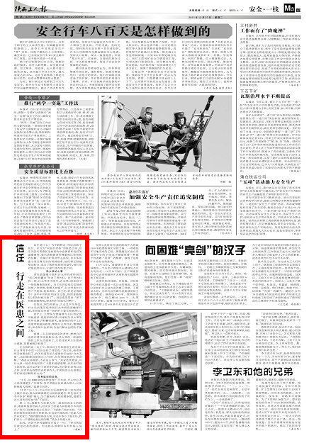 信任是什么?書(shū)中解釋為:相信而敢于托付。在互為“利益共同體”的醫(yī)患之間,信任不僅代表著醫(yī)生較高的專(zhuān)業(yè)素質(zhì)和良好的道德素養(yǎng),更代表著患者的尊重和以命相托的信賴(lài)。在銅川礦務(wù)局中心醫(yī)院,有許多醫(yī)患之間互尊互信的和諧畫(huà)面,他們相互鼓勵(lì)相互配合,成為了戰(zhàn)勝疾病的同盟軍,他們用對(duì)彼此的信任,讓愛(ài)行走在醫(yī)患之間。