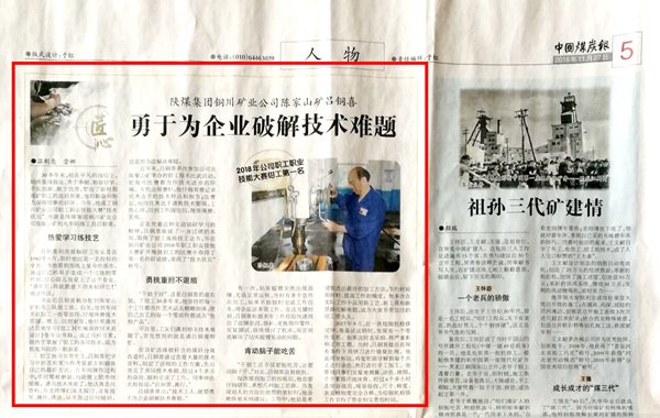 正是憑著這種主動(dòng)鉆研、鍥而不舍的學(xué)習(xí)精神,呂銅喜終于練就了一身過(guò)硬的本領(lǐng)取得了鉗工高級(jí)技工證書(shū),并且在銅川礦業(yè)公司2018年職工職業(yè)技能大賽礦井維修鉗工的比賽中取得了第一名,榮獲“技術(shù)狀元”榮譽(yù)稱號(hào)。