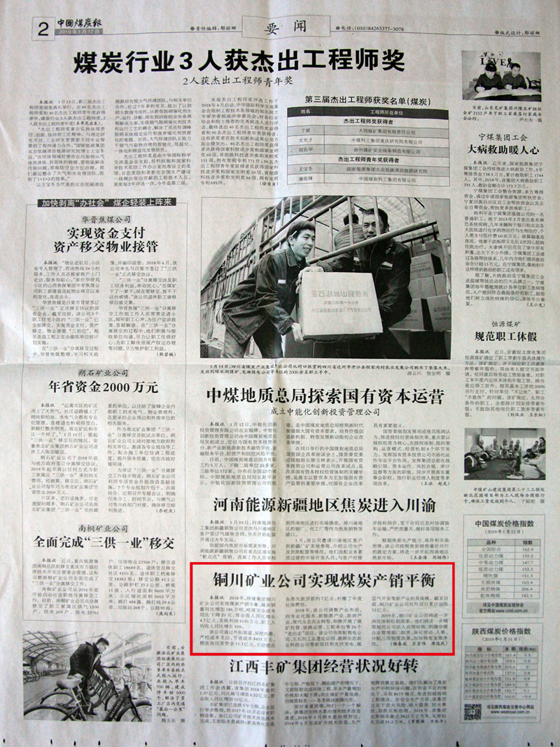 2018年,陜煤集團(tuán)銅川礦業(yè)煤炭產(chǎn)銷實(shí)現(xiàn)平衡,比去年同期多銷售186萬噸,噸煤完全成本下降21元,營業(yè)收入較同期多完成4.7億元,實(shí)現(xiàn)盈利5100萬元,完成陜煤集團(tuán)下達(dá)的指標(biāo),超額完成追趕超越指標(biāo),職工收入人均增幅10%。