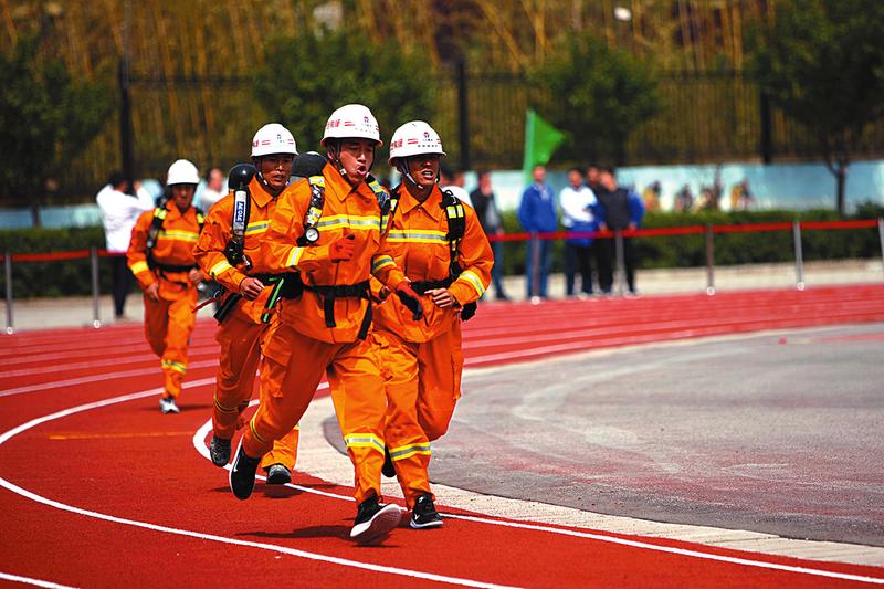參賽隊員進行緊急處置險情演練。