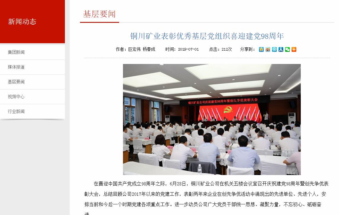 在喜迎中國共產(chǎn)黨成立98周年之際,6月28日,銅川礦業(yè)公司在機關五樓會議室召開慶祝建黨98周年暨創(chuàng)先爭優(yōu)表彰大會,總結回顧公司2017年以來的黨建工作,表彰兩年來企業(yè)在創(chuàng)先爭優(yōu)活動中涌現(xiàn)出的先進單位、先進個人,安排當前和今后一個時期黨建各項重點工作。進一步動員公司廣大黨員干部統(tǒng)一思想、凝聚力量,不忘初心、砥礪奮進。