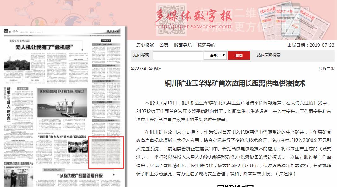 銅川礦業(yè)玉華煤礦首次應(yīng)用長距離供電供液技術(shù)