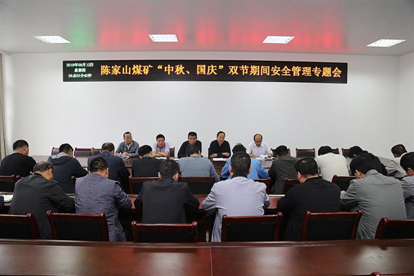 在陳家山煤礦在調(diào)度信息樓一樓會議室,正在召開“中秋”、“國慶”期間安全管理專題會,強(qiáng)化安全生產(chǎn)意識,嚴(yán)格標(biāo)準(zhǔn)化作業(yè),嚴(yán)格安全隱患排查,確保雙節(jié)期間礦井安全生產(chǎn)穩(wěn)步進(jìn)行。