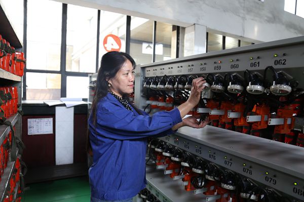 “礦燈是礦工兄弟的‘眼睛’?!鼻鍧?、維護(hù)、充電、檢修,每天重復(fù)的動(dòng)作,不斷地穿梭在十幾排燈架之間,不僅沒(méi)讓充電房的女工感到厭煩,反而多了幾分神圣。她們?cè)诠ぷ髌陂g,嚴(yán)格確保燈線沒(méi)有開(kāi)裂、燈圈沒(méi)有松動(dòng)、照明亮度可靠、充電接觸及充電電壓到位,避免給職工的井下作業(yè)帶來(lái)耽擱。
