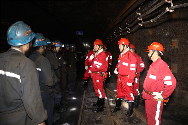 座談會(huì)后,督導(dǎo)組分為兩個(gè)小組,井下組深入礦井采、掘工作面現(xiàn)場(chǎng)開(kāi)展了認(rèn)真細(xì)致的安全生產(chǎn)檢查。在玉華礦綜采工作面,孫慶國(guó)與綜采隊(duì)當(dāng)班職工進(jìn)行了親切交談,詳細(xì)詢(xún)問(wèn)了解了設(shè)備檢修維護(hù)、日常勞動(dòng)組織、現(xiàn)場(chǎng)安全管理措施落實(shí)等情況,并認(rèn)真查看了頂板離層監(jiān)測(cè)系統(tǒng)、運(yùn)輸系統(tǒng)、綜采設(shè)備和防滅火等設(shè)施管理運(yùn)行情況。督導(dǎo)組就加快智能化工作面建設(shè)和運(yùn)輸、掘進(jìn)專(zhuān)業(yè)引入新技術(shù)等工作提出了指導(dǎo)意見(jiàn)和建議。
