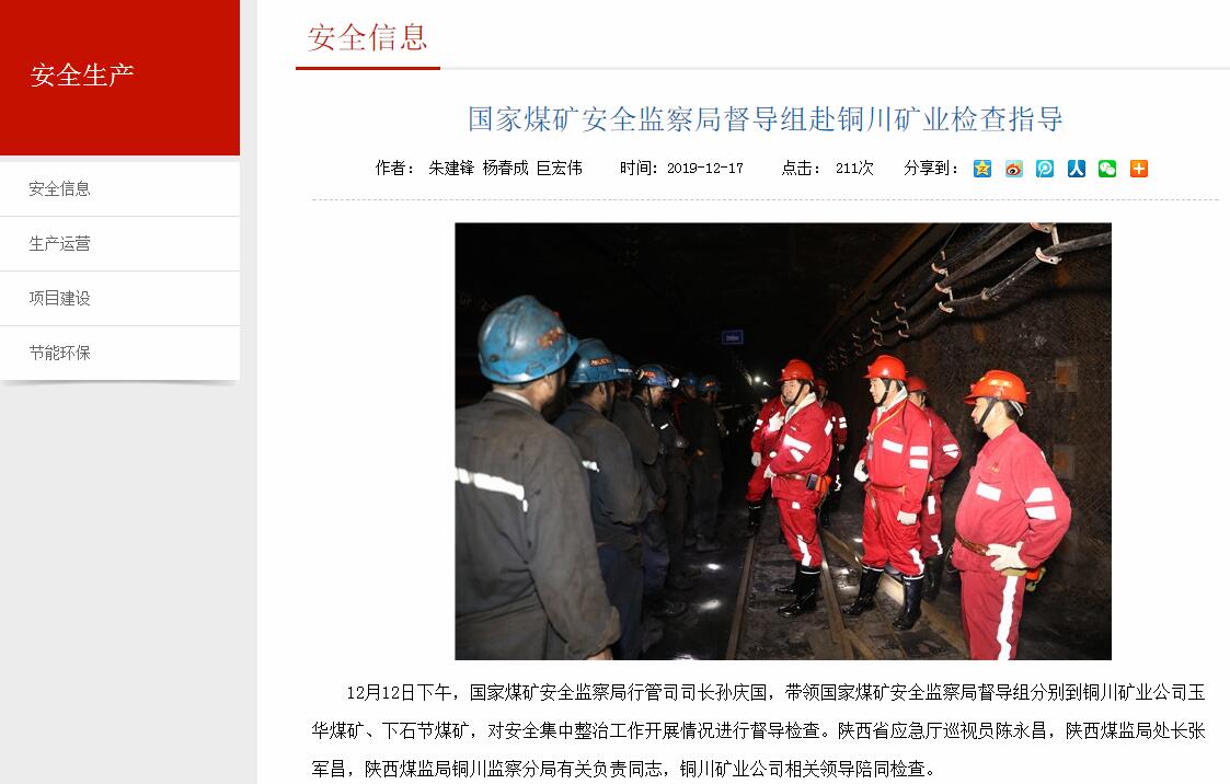 國(guó)家煤礦安全監(jiān)察局督導(dǎo)組赴銅川礦業(yè)檢查指導(dǎo)