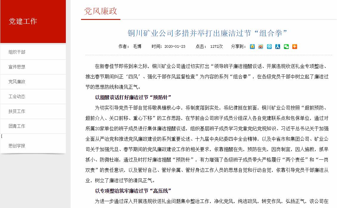 銅川礦業(yè)公司多措并舉打出廉潔過節(jié)“組合拳”