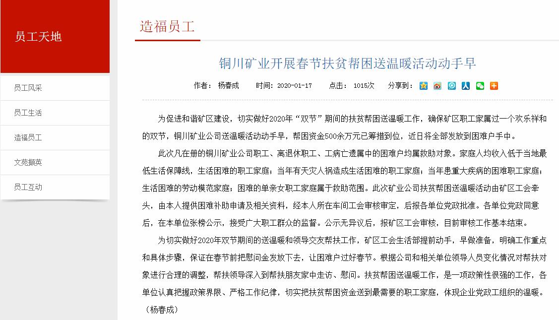 為促進(jìn)和諧礦區(qū)建設(shè),切實(shí)做好2020年“雙節(jié)”期間的扶貧幫困送溫暖工作,確保礦區(qū)職工家屬過(guò)一個(gè)歡樂(lè)祥和的雙節(jié),銅川礦業(yè)公司送溫暖活動(dòng)動(dòng)手早,幫困資金500余萬(wàn)元已籌措到位,近日將全部發(fā)放到困難戶手中。