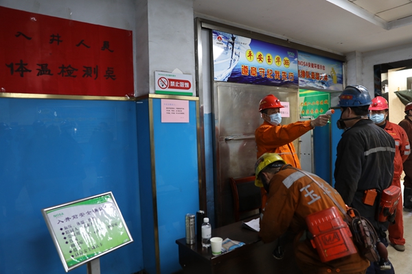 該礦認(rèn)真?zhèn)鬟_(dá)貫徹上級(jí)組織就切實(shí)做好礦井疫情防控和煤炭生產(chǎn)供應(yīng)保障工作的安排部署精神,以黨員干部靠前上,依靠群眾齊參與,千方百計(jì)強(qiáng)防護(hù),強(qiáng)化作風(fēng)嚴(yán)落實(shí)的原則,對(duì)疫情防控和安全生產(chǎn)工作進(jìn)行再部署,著力構(gòu)建聯(lián)防聯(lián)控網(wǎng)格化防控體系,推進(jìn)防控與生產(chǎn)“兩手抓、兩手硬、兩不誤”。礦疫情防控領(lǐng)導(dǎo)小組強(qiáng)化摸排頻率,機(jī)關(guān)黨員干部每天兩次以上對(duì)機(jī)關(guān)科室、基層單位人員春節(jié)出行、返崗路徑、人員接觸、家庭成員健康狀況、崗前體溫進(jìn)行排查,將各項(xiàng)記錄與春節(jié)以來(lái)摸排臺(tái)賬進(jìn)行細(xì)致梳理對(duì)比,發(fā)動(dòng)群眾相互監(jiān)督,實(shí)現(xiàn)摸排情況動(dòng)態(tài)更新,確保摸排準(zhǔn)確有效,做到防控心中有數(shù)。礦區(qū)進(jìn)出口、生活區(qū)和副井入井口等關(guān)鍵場(chǎng)所設(shè)立8個(gè)體溫檢測(cè)點(diǎn),做到職工出入礦區(qū)、升入井體溫檢測(cè)覆蓋無(wú)死角。基層單位在班前對(duì)職工進(jìn)行體溫再檢測(cè)的基礎(chǔ)上,嚴(yán)格對(duì)照流程進(jìn)行身體、精神狀態(tài)安全確認(rèn),進(jìn)一步加強(qiáng)排查方式和效果。礦黨政千方百計(jì)保障防護(hù)物資供應(yīng),為干部職工發(fā)放地面防護(hù)性口罩和生產(chǎn)作業(yè)防護(hù)性口罩濾芯。取消班前會(huì)、生產(chǎn)例會(huì)等會(huì)議,實(shí)行干部跟班、班組長(zhǎng)生產(chǎn)任務(wù)領(lǐng)取制,減少人員聚集。對(duì)通勤車、罐籠、井下人車實(shí)行定員與秩序、空間管理,每趟/次均進(jìn)行消毒與定時(shí)通風(fēng),做到崗前、升井每人必檢,有力保障生產(chǎn)生活有序正常。礦井與地方社區(qū)緊密配合,建立多道疫情防控檢測(cè)點(diǎn),嚴(yán)密排查流動(dòng)人員與車輛,推進(jìn)網(wǎng)格化區(qū)域管控,暢通信息渠道,共享摸排信息,做好重點(diǎn)人員檢測(cè),切斷疫情傳播鏈。與此同時(shí),加強(qiáng)與地方政府和疫情防控指揮部溝通聯(lián)系,密切關(guān)注防控動(dòng)態(tài),明確處置流程,完善應(yīng)急預(yù)案。