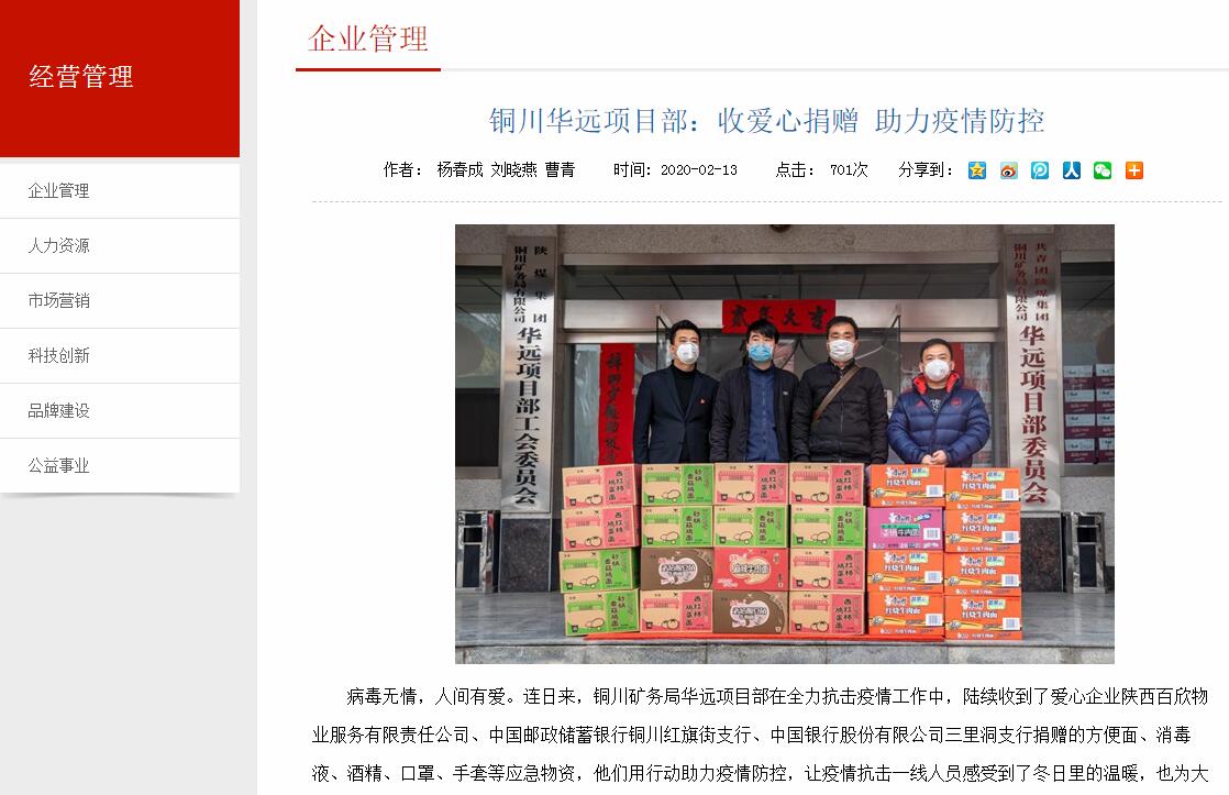 銅川華遠(yuǎn)項(xiàng)目部:收愛(ài)心捐贈(zèng) 助力疫情防控