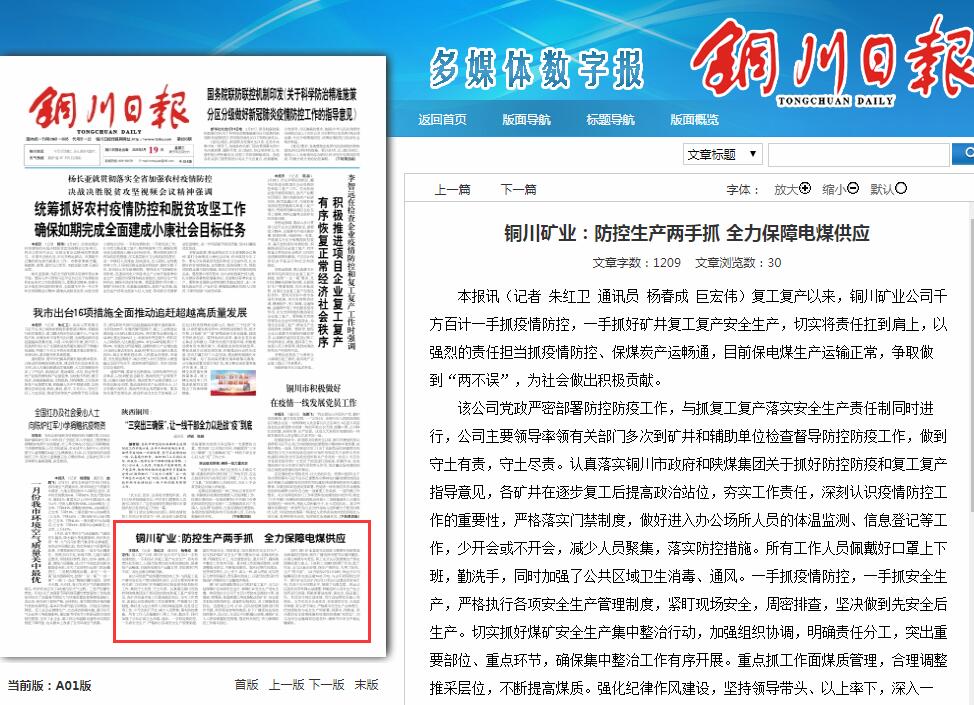 銅川礦業(yè):防控生產(chǎn)兩手抓 全力保障電煤供應(yīng)