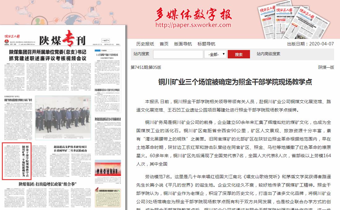 銅川礦業(yè)三個場館被確定為照金干部學院現(xiàn)場教學點