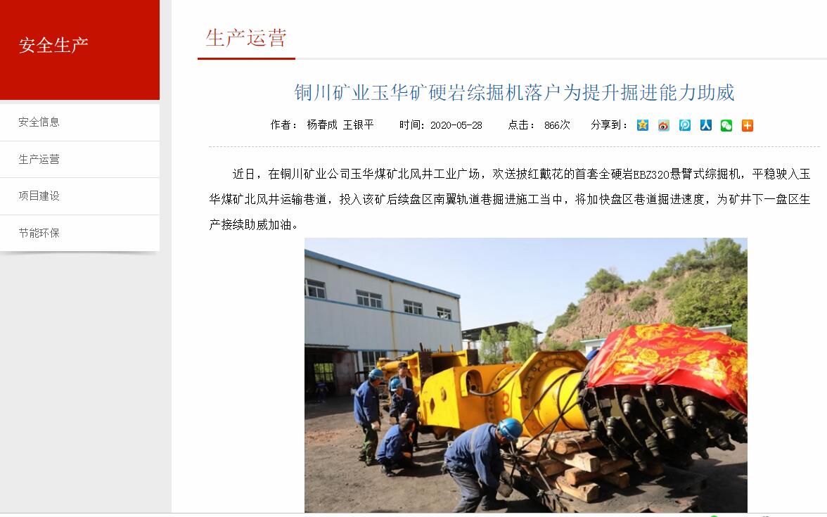 銅川礦業(yè)玉華礦硬巖綜掘機落戶為提升掘進能力助威