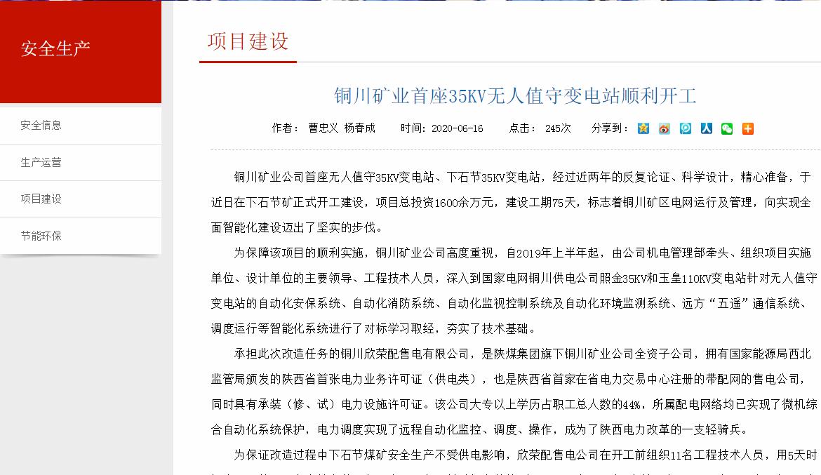 銅川礦業(yè)首座35KV無人值守變電站順利開工