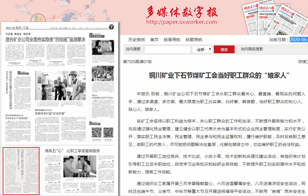 本報訊 目前,銅川礦業(yè)公司下石節(jié)煤礦工會從職工群眾最關心、最直接、最現實的問題入手,通過多渠道、多方面、最大限度為職工辦實事、辦好事、解難題,當好職工群眾的知心人、貼心人、娘家人。