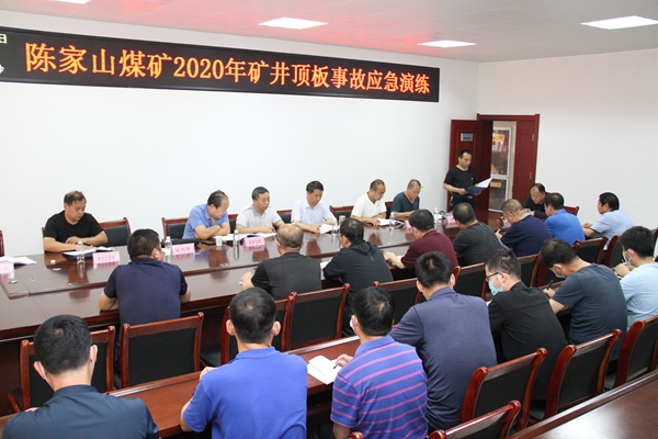 6月30日上午,陳家山煤礦2020年礦井頂板事故應急預案演練在礦調度室舉行。礦長擔任搶險救災總指揮,副總指揮及指揮部成員在調度室待命,調度室值班人員在崗。