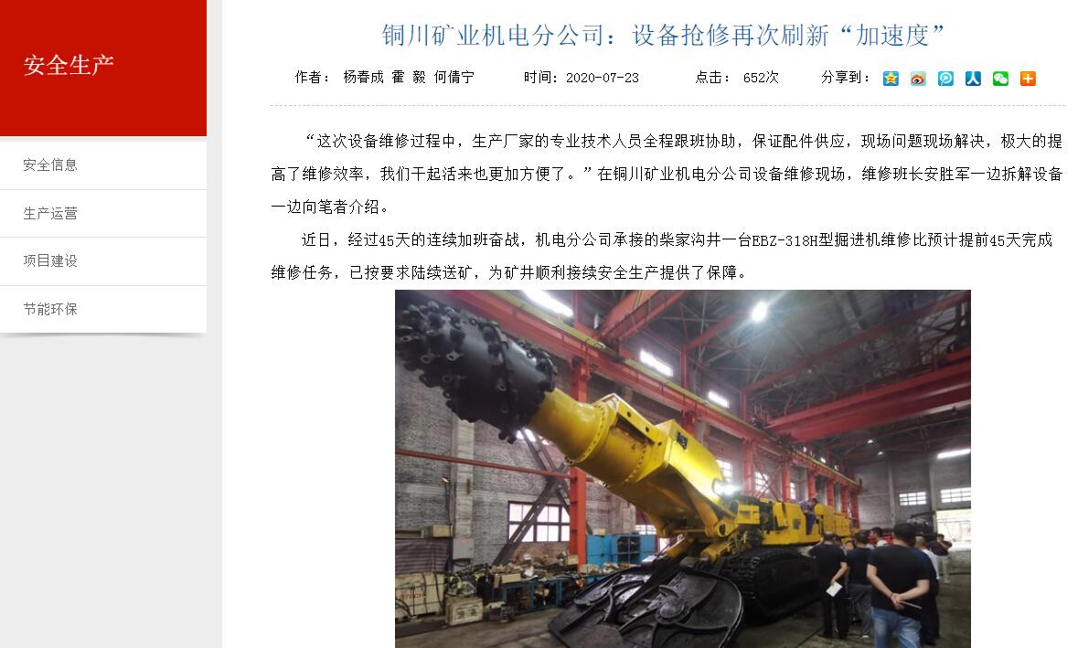 銅川礦業(yè)機電分公司:設備搶修再次刷新“加速度”