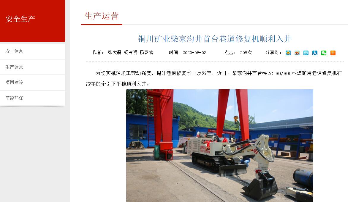 銅川礦業(yè)柴家溝井首臺(tái)巷道修復(fù)機(jī)順利入井