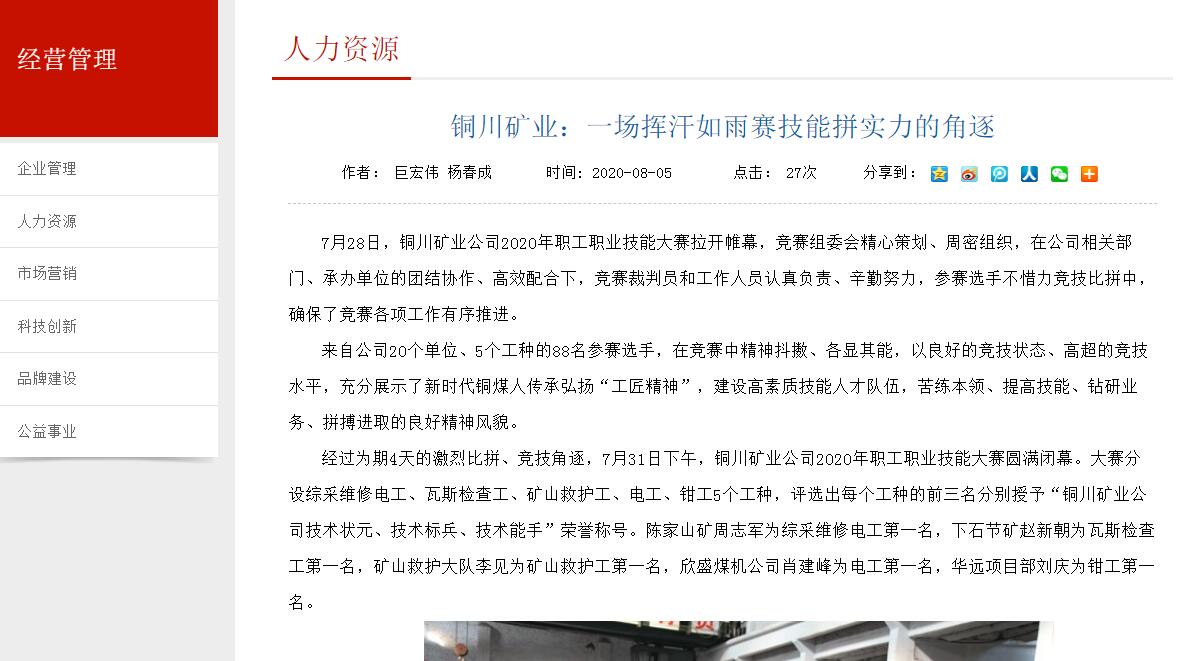 參賽隊(duì)員在比賽中賽出了風(fēng)格,賽出了水平,充分展示了新時(shí)代銅煤職工精湛的職業(yè)技能和良好的精神風(fēng)貌,以及各單位推進(jìn)職工素質(zhì)提升工程中取得的優(yōu)異成績,達(dá)到了“檢閱隊(duì)伍、互鑒提高、展示成果”的預(yù)期目的,為公司進(jìn)一步加強(qiáng)技能人才隊(duì)伍建設(shè),全力助推企業(yè)追趕超越、轉(zhuǎn)型升級、實(shí)現(xiàn)高質(zhì)量發(fā)展提供強(qiáng)勁支撐。