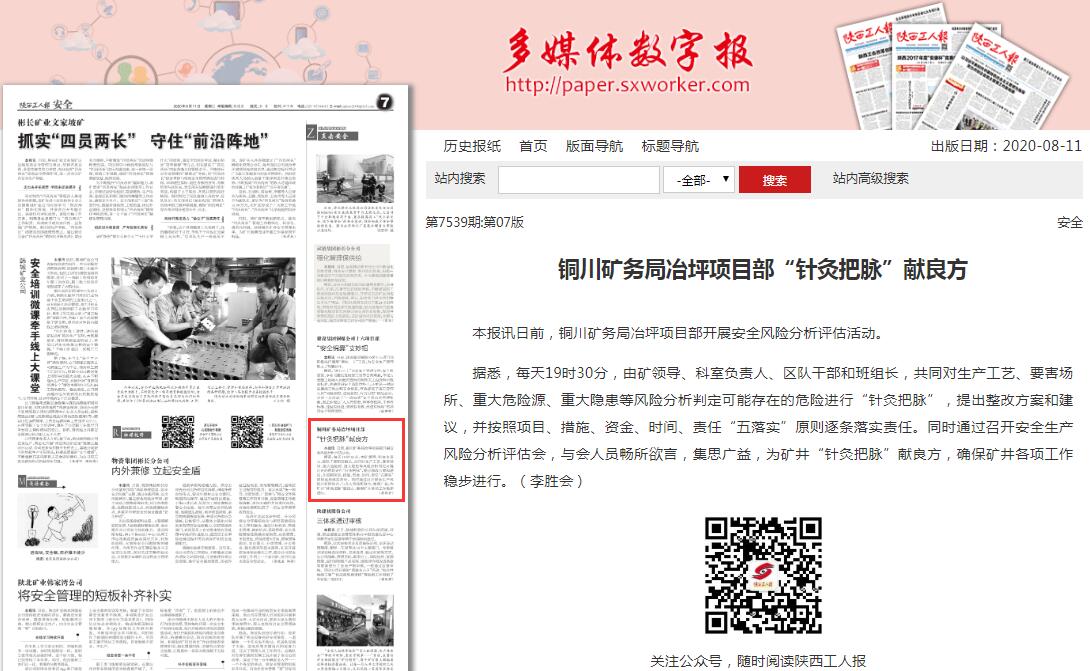 本報訊日前,銅川礦務(wù)局冶坪項目部開展安全風險分析評估活動。