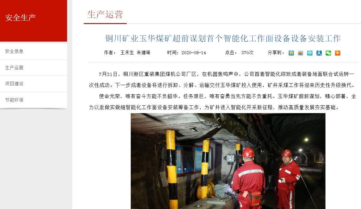 銅川礦業(yè)玉華煤礦超前謀劃首個(gè)智能化工作面設(shè)備設(shè)備安裝工作