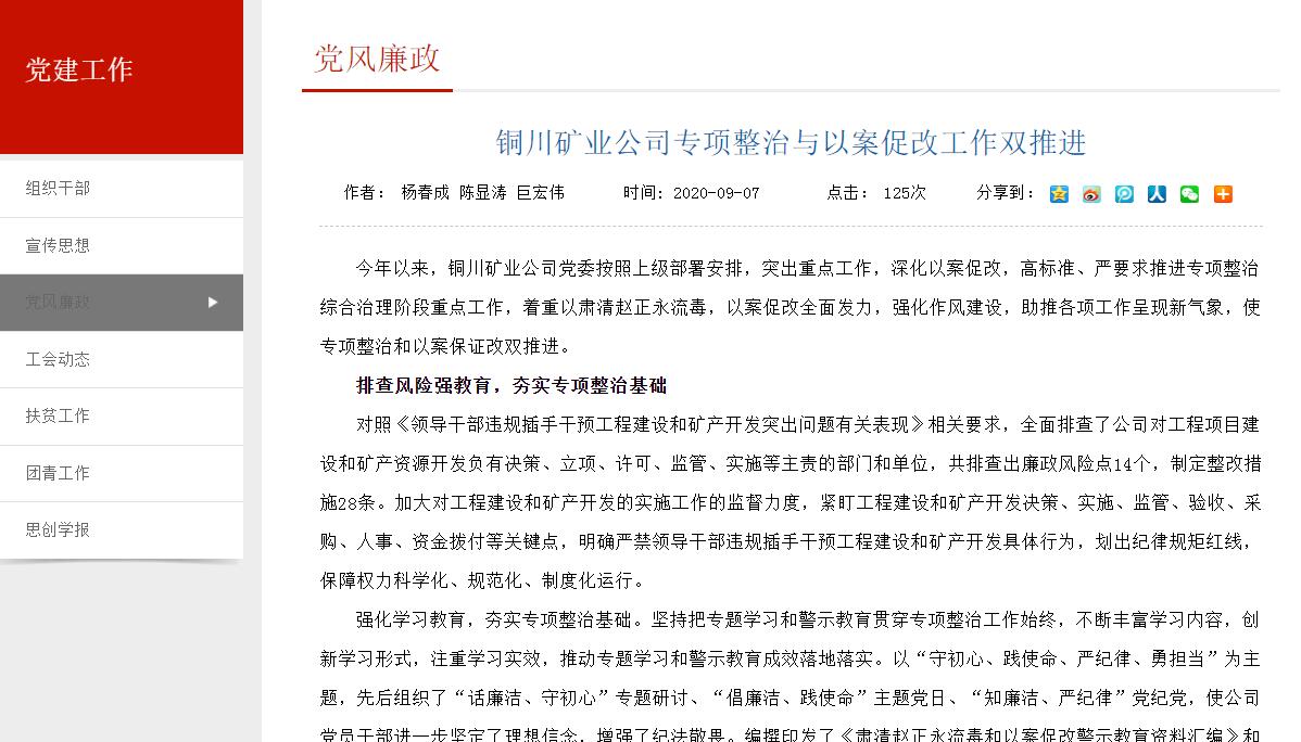 今年以來,銅川礦業(yè)公司黨委按照上級部署安排,突出重點(diǎn)工作,深化以案促改,高標(biāo)準(zhǔn)、嚴(yán)要求推進(jìn)專項整治綜合治理階段重點(diǎn)工作,著重以肅清趙正永流毒,以案促改全面發(fā)力,強(qiáng)化作風(fēng)建設(shè),助推各項工作呈現(xiàn)新氣象,使專項整治和以案保證改雙推進(jìn)。
