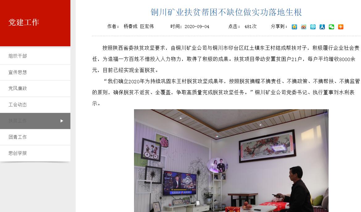 銅川礦業(yè)扶貧幫困不缺位做實(shí)功落地生根