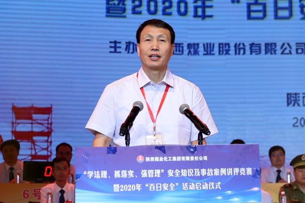 王世斌致開(kāi)幕詞并作2020年“百日安全”活動(dòng)動(dòng)員講話。他指出,本次活動(dòng)的舉辦,目的是深入貫徹落實(shí)習(xí)近平總書(shū)記關(guān)于安全生產(chǎn)的重要論述和指示批 示精神,進(jìn)一步堅(jiān)定信心提升集團(tuán)公司安全管理水平,筑牢安全生產(chǎn)基礎(chǔ),杜絕安全風(fēng)險(xiǎn)和隱患,助推企業(yè)安全健康持續(xù)發(fā)展。他同時(shí)對(duì)所屬8家企業(yè)按照國(guó)家煤監(jiān) 局要求深入開(kāi)展“學(xué)法規(guī)、抓落實(shí)、強(qiáng)管理”活動(dòng),對(duì)標(biāo)對(duì)表、嚴(yán)抓細(xì)改、提升管理、保障安全所采取的舉措、推出的亮點(diǎn)做法及取得的務(wù)實(shí)成效進(jìn)行了梳理、給予 了肯定。他指出,舉辦本次安全知識(shí)及事故案例講評(píng)競(jìng)賽,是對(duì)開(kāi)展“學(xué)法規(guī)、抓落實(shí)、強(qiáng)管理”活動(dòng)綜合成效的檢驗(yàn)和展示,組織現(xiàn)任在崗的“五職礦長(zhǎng)”參加競(jìng) 賽旨在抓住關(guān)鍵少數(shù),強(qiáng)化安全責(zé)任和制度措施落實(shí),這在集團(tuán)成立以來(lái)也是首次。舉辦競(jìng)賽的同時(shí),同步啟動(dòng)2020年“百日安全”活動(dòng),充分體現(xiàn)了陜煤集團(tuán) 和股份公司實(shí)現(xiàn)全年安全工作目標(biāo),取得集中整治成果的堅(jiān)定信心。他要求,所屬各企業(yè)要以本次活動(dòng)為契機(jī),時(shí)刻堅(jiān)守“發(fā)展決不能以犧牲人的生命為代價(jià)”這條 不可逾越的紅線,始終銘記“生命至上,安全為天”的誓言,真正將安全記在心上、扛在肩上、落實(shí)在行為上,做到安全工作、幸福生活。要弘揚(yáng)“生命至上、安全 第一”思想,樹(shù)牢安全發(fā)展理念,堅(jiān)持把安全作為第一要求、第一責(zé)任和第一標(biāo)準(zhǔn),推動(dòng)企業(yè)實(shí)現(xiàn)安全健康持續(xù)發(fā)展。各單位要認(rèn)真學(xué)習(xí)貫徹習(xí)總書(shū)記關(guān)于安全生產(chǎn) 工作的重要指示批示精神,結(jié)合今年安全工作情況,謀劃好2021年煤礦安全生產(chǎn)準(zhǔn)備工作,圍繞“風(fēng)險(xiǎn)零失控、過(guò)程零隱患、安全零傷亡”的工作目標(biāo),健全完 善“從根本上消除事故隱患”的工作機(jī)制,全面貫徹落實(shí)好集團(tuán)公司安全管理十條紅線規(guī)定,嚴(yán)格安全生產(chǎn)責(zé)任履職考核,扎實(shí)做好2021年度煤礦重大風(fēng)險(xiǎn)辨識(shí) 評(píng)估、專(zhuān)項(xiàng)整治三年行動(dòng)“兩個(gè)清單”及嚴(yán)厲打擊各種違法違規(guī)行為等重點(diǎn)工作,圍繞高質(zhì)量發(fā)展、實(shí)現(xiàn)本質(zhì)安全,不斷推動(dòng)煤礦安全治理體系和治理能力現(xiàn)代化, 切實(shí)保障企業(yè)安全發(fā)展和確保年度安全目標(biāo)的實(shí)現(xiàn)。