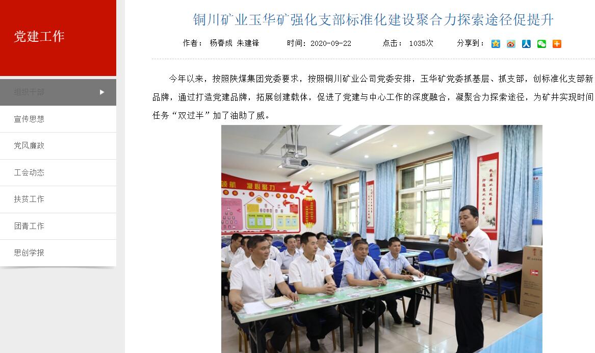 銅川礦業(yè)玉華礦強(qiáng)化支部標(biāo)準(zhǔn)化建設(shè)聚合力探索途徑促提升