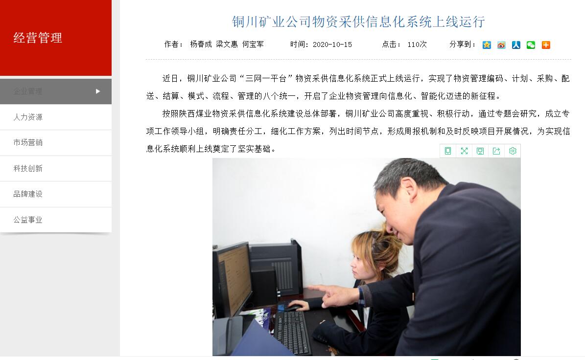 近日,銅川礦業(yè)公司“三網(wǎng)一平臺(tái)”物資采供信息化系統(tǒng)正式上線運(yùn)行,實(shí)現(xiàn)了物資管理編碼、計(jì)劃、采購(gòu)、配送、結(jié)算、模式、流程、管理的八個(gè)統(tǒng)一,開啟了企業(yè)物資管理向信息化、智能化邁進(jìn)的新征程。