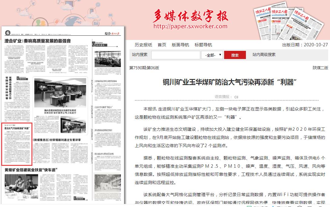銅川礦業(yè)玉華煤礦防治大氣污染再添新“利器”
