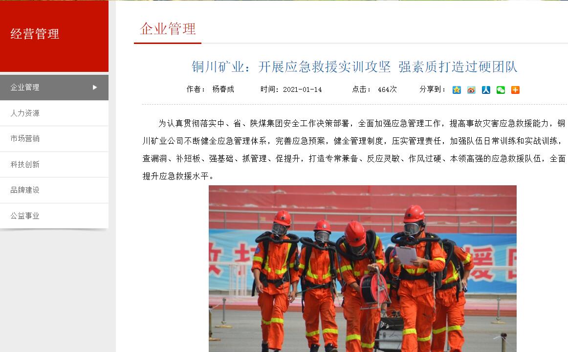 為認(rèn)真貫徹落實(shí)中、省、陜煤集團(tuán)安全工作決策部署,全面加強(qiáng)應(yīng)急管理工作,提高事故災(zāi)害應(yīng)急救援能力,銅川礦業(yè)公司不斷健全應(yīng)急管理體系,完善應(yīng)急預(yù)案,健全管理制度,壓實(shí)管理責(zé)任,加強(qiáng)隊(duì)伍日常訓(xùn)練和實(shí)戰(zhàn)訓(xùn)練,查漏洞、補(bǔ)短板、強(qiáng)基礎(chǔ)、抓管理、促提升,打造專常兼?zhèn)?、反?yīng)靈敏、作風(fēng)過硬、本領(lǐng)高強(qiáng)的應(yīng)急救援隊(duì)伍,全面提升應(yīng)急救援水平。