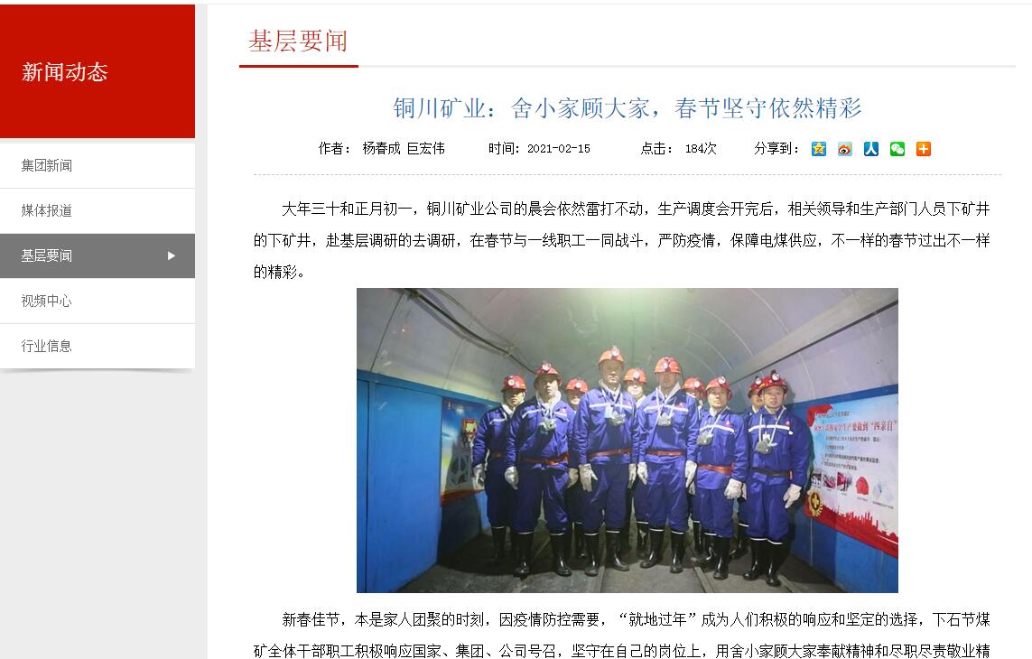 大年三十和正月初一,銅川礦業(yè)公司的晨會依然雷打不動,生產(chǎn)調(diào)度會開完后,相關(guān)領(lǐng)導(dǎo)和生產(chǎn)部門人員下礦井的下礦井,赴基層調(diào)研的去調(diào)研,在春節(jié)與一線職工一同戰(zhàn)斗,嚴(yán)防疫情,保障電煤供應(yīng),不一樣的春節(jié)過出不一樣的精彩。