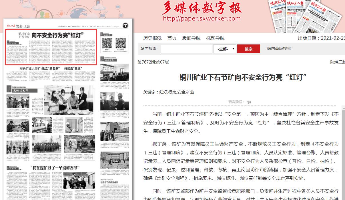 銅川礦業(yè)下石節(jié)礦向不安全行為亮“紅燈”